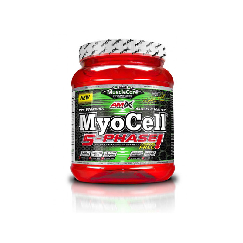 MyoCell 5 Phase de Amix MuscleCore es un complemento novedoso que se ingiere antes de realizar ejercicio, formulado con la tecnología más novedosa elaborado en los laboratorios Large Life. MyoCell 5 Phase mezcla hasta 28 componentes distintos para lograr así unos efectos óptimos y realizar el ejercicio físico con el máximo potencial.